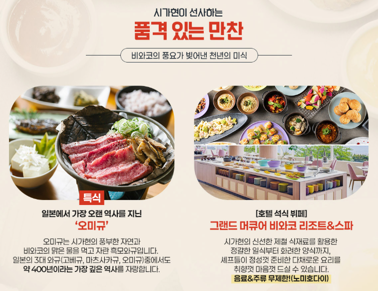 - 비와코 메리어트 호텔 ♨ 또는 그랜드 머큐어 비와코 리조트&스파 ♨ 또는 동급 [트윈 기준]