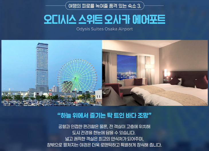▶ 호텔 : 오디시스 스위트 오사카 에어포트 호텔 또는 동급(2인 1실)