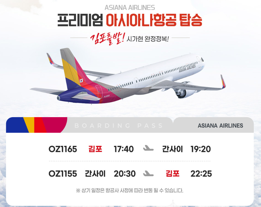 [OZ1165] 김포 17:40 → 간사이 19:20