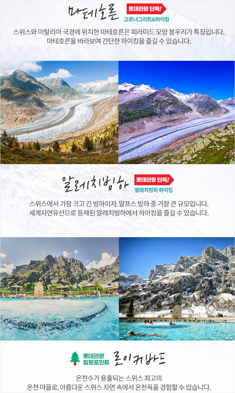 타사 비교불가! 오직 롯데관광에서만 찾아볼 수 있는 스위스여행!